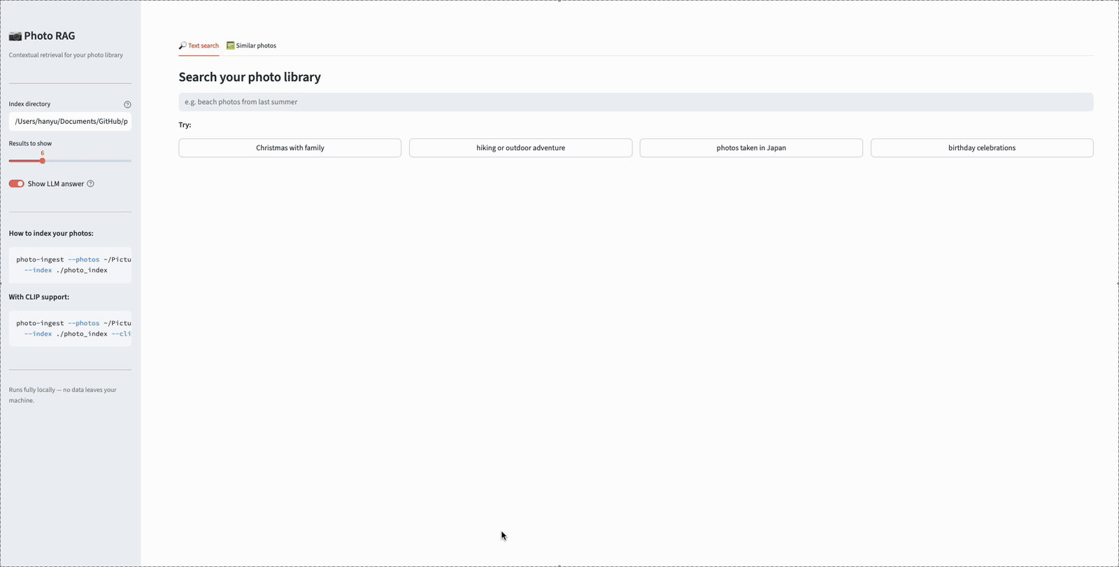 Running the entire pipeline locally — Ollama for vision and text generation, ChromaDB for storage, sentence-transformers for embeddings — means no photos leave your machine. For a personal photo library, this isn’t just a nice-to-have; it’s the only acceptable architecture for many people. The tradeoff is speed: LLaVA captioning is the bottleneck during indexing, especially on CPU. On Apple Silicon with Metal acceleration, it’s reasonable.